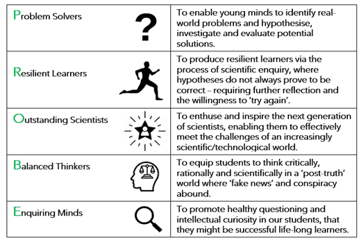 Our Science provision aims to enable all pupils to access an outstanding curriculum, which will produce in them ‘PROBE’ characteristics.