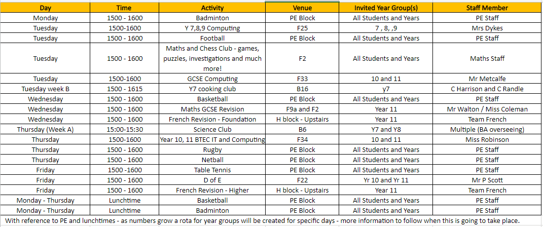 Lunchtime Clubs